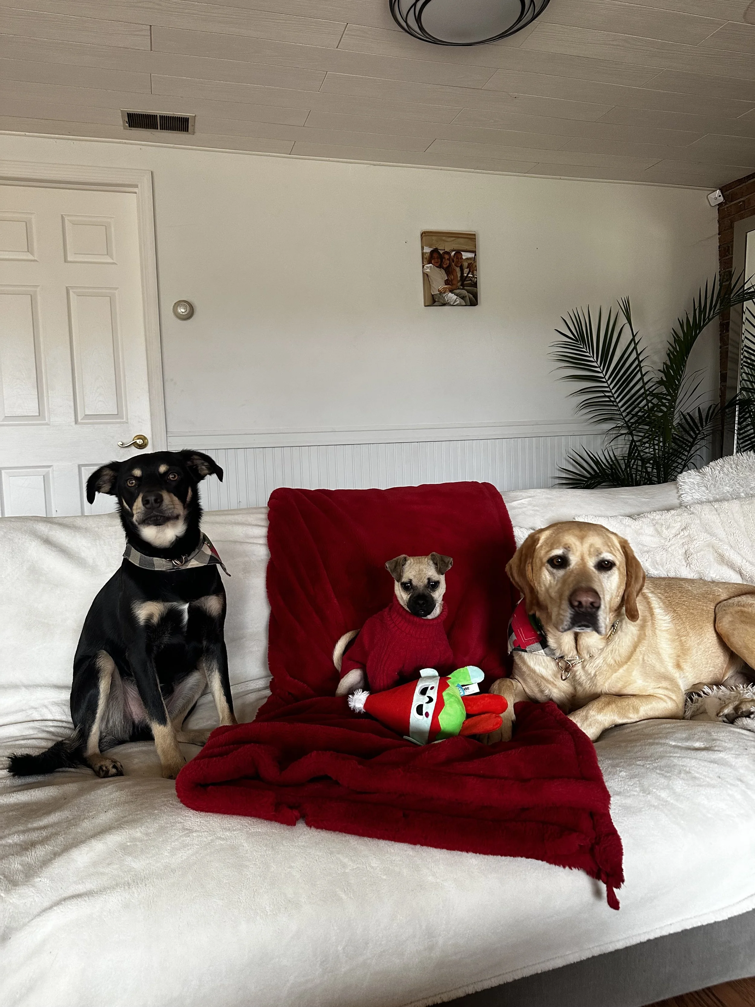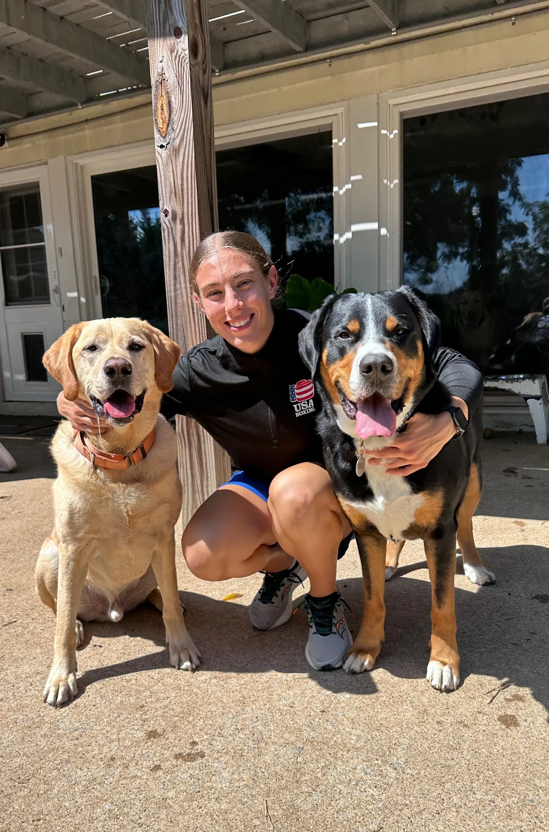 Meet Julianna’s partner, Brooke! A lot like Julianna, she grew up surrounded by dogs. Working as a Personal Trainer/Athlete makes her work schedule flexible. When she is home she is either outside running around with the dogs or hanging out on the couch with them! Her experience with dogs allows her to connect with any pup she meets!